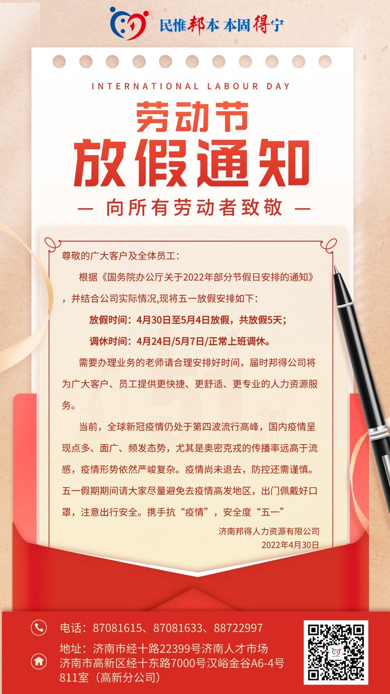 - 2024年5月濟(jì)南邦得人力資源有限公司高新分公司關(guān)于開(kāi)展...